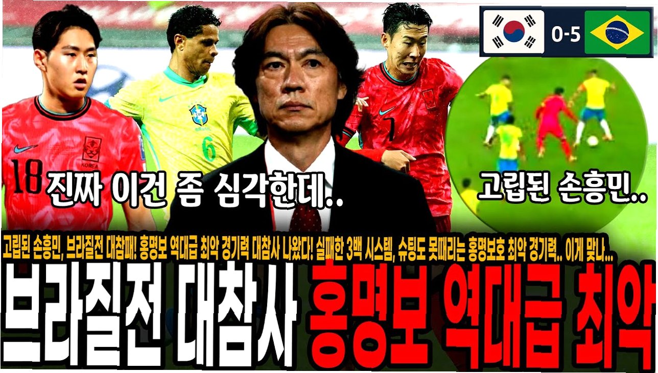 한국 축구 대표팀이 브라질에 0-5로 패하며, 안첼로티 감독은 손흥민을 칭찬했습니다. 홍명보 감독은 개선점을 제시했고, 손흥민은 팀원들을 격려했습니다. 이재성은 배움의 중요성을 강조하며, 한국 축구는 개인 기량, 팀 전술, 긍정적인 팀 분위기 유지를 통해 발전해야 합니다.