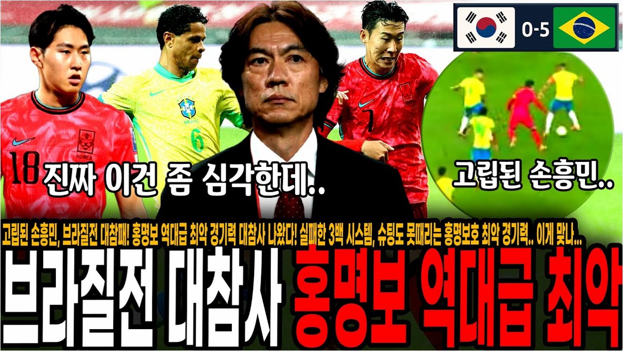 대한민국 축구 국가대표팀이 브라질과의 친선 경기에서 0-5로 패배하며, 홍명보 감독의 팀 운영에 대한 비판적인 시각이 쏟아지고 있습니다. 지난 9월 A매치 2연전에서 미국과 멕시코를 상대로 1승 1무를 거두며 상승세를 탔지만, 브라질의 강력함에 무너졌습니다. 이번 패배는 사상 첫 월드컵 원정 8강 진출을 목표로 하는 홍명보호에 큰 과제를 안겨주었습니다. 신문선 명지대 초빙 교수는 브라질전을 지켜본 후, 팀의 수비 문제점을 지적하며 홍명보 감독의 발언에 날카로운 비판을 가했습니다.