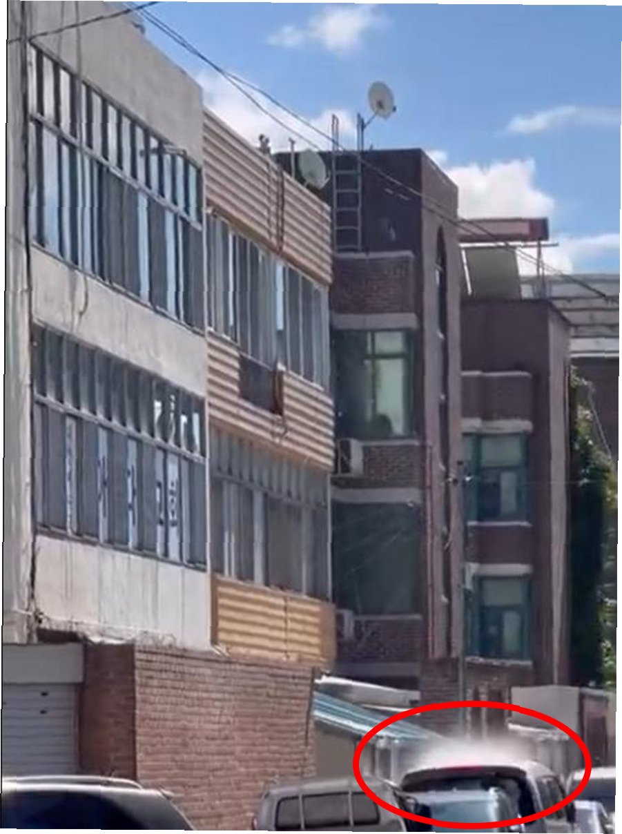 옥상 세차, 아찔한 광경