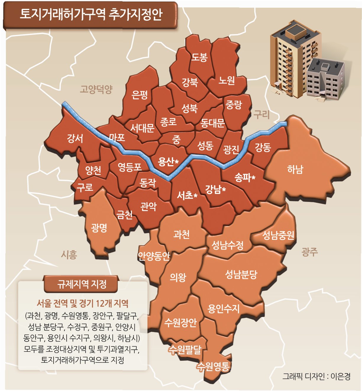 A.서울시 전체와 경기도 12곳을 규제지역 및 토지거래허가구역으로 묶는 초강력 규제입니다. 또한, 대출 규제 강화, 탈세 신고센터 설치 등 수요 억제책이 포함되었습니다.